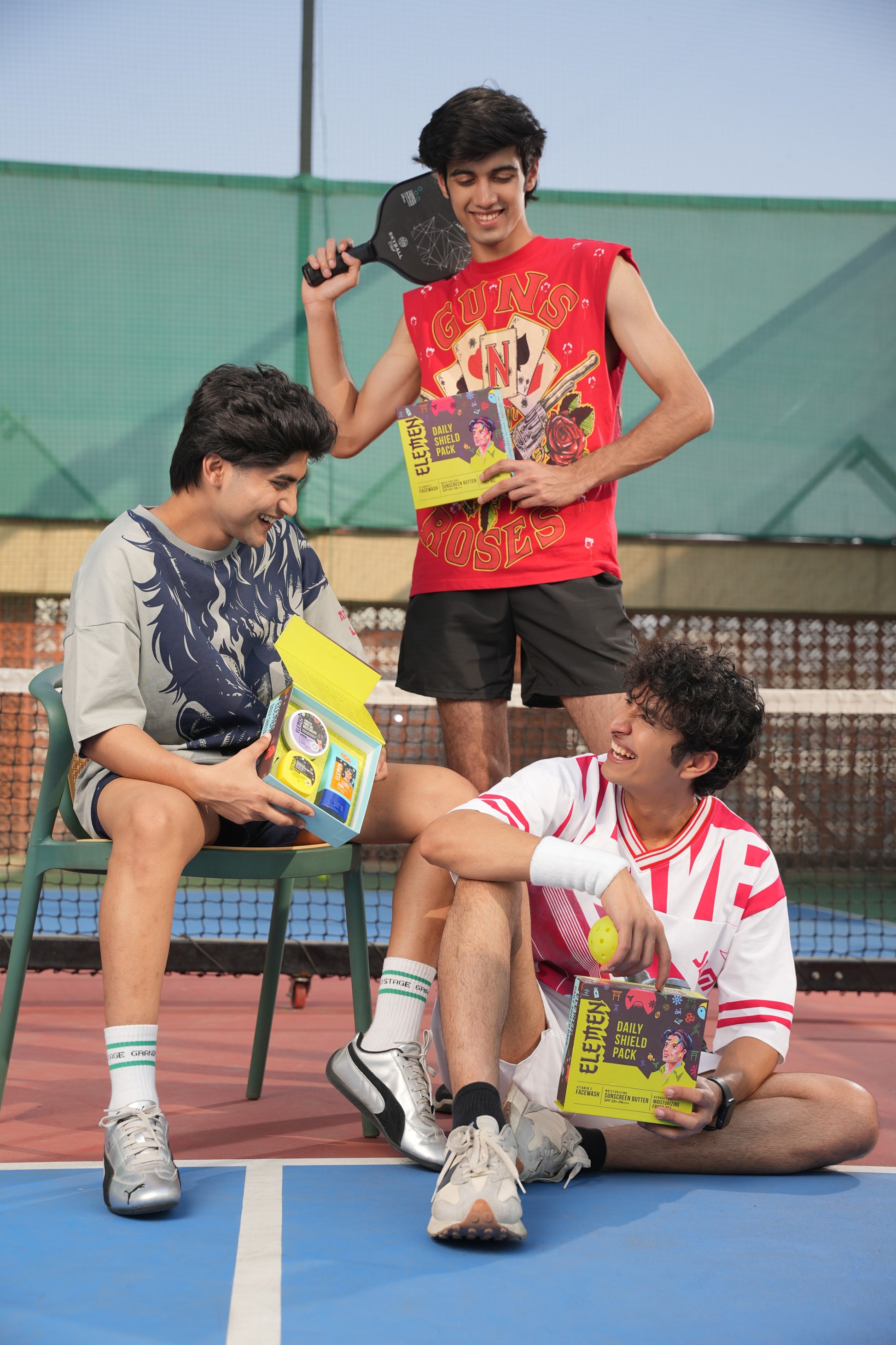 The Elemen Daily Shield Pack is your ultimate 3-in-1 skincare combo designed for boys who need simple but effective care. It includes the Vitamin C Facewash (120ml) to cleanse dirt, oil, and pollution, the Moisturizing Sunscreen Butter SPF 50+ PA+++ for broad-spectrum sun protection without greasy shine, and the Hydraflex Moisturizing Frost Gel (100g) to keep skin hydrated, cool, and acne-safe. Made with stabilized Vitamin C, Rice Starch, and Blueberry Extract, this pack is teen-friendly, lightweight, and perfect for India’s harsh sun and pollution. No parabens. No sulphates. Just daily defense for your element.